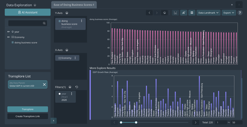 顏教授在此次的webinar當中,也請Aralia同步匯入聯合國的經商便利性指標,並與上述的兩項指標進行綜合性評量。經商便利性(Ease of Doing Business),由世界銀行發布,其所涵蓋的開辦企業、取得信貸、跨境貿易等次要指標,是企業評估營運摩擦成本的重要參考。