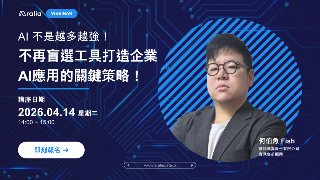 2026-04-14 | 14:00 (GMT+8) | 🕗 1 小時 | 活動簡介 課程介紹 在 AI 工具爆發成長的今天,企業正面臨一個關鍵問題:為什麼導入了 AI,卻沒有帶來預期的成效? 許多企業不斷採購新的 AI 工具,卻忽略了一個更根本的事實—AI 的價值,不取決於工具本身,而取決於數據是否能被有效運用。 當數據分散在不同部門、系統彼此封閉,AI 就像一台沒有燃料的引擎,再強大的模型也無法發揮作用。這些看不見的「數據孤島」,正是多數企業 AI 導入失敗的真正原因。 本場 Webinar 將從企業 AI 導入的現實挑戰出發,拆解工具背後的運作邏輯,並帶你理解:與其不斷堆疊工具,不如建立一個能支撐所有 AI 應用的數據底座。 我們將進一步探討企業在選擇 AI 工具時應具備的「三層架構」,以及如何從「工具導向」轉向「生態系導向」,讓 AI 真正跨部門運作、持續創造價值。 同時,也將介紹 Aralia 如何透過開放生態系,讓企業不必在封閉系統與高成本開發之間做選擇,而是以更靈活的方式,快速串接、擴展 AI 能力。 時間與活動方式 日期:2026/04/14 (星期二)時間:14:00 ~ 13:00 (GMT+8)地點:Google Meet 線上課程 (結束後會上傳 YouTube) 適合以下對象 | 課程難度:★★★☆☆ 🙋♂️正在規劃或已導入 AI […]