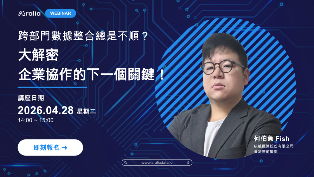 2026-04-28 | 14:00 (GMT+8) | 🕗 1 小時 | 活動簡介 課程介紹 當企業開始推動 AI 與數據整合時,真正的阻力,往往不來自技術,而是來自人性。 部門之間不願共享數據,不是因為不重要,而是因為 — 麻煩、風險、責任不清,甚至可能被檢討。 於是,數據整合專案一再卡關,跨部門合作流於形式,AI 專案也因此無法真正落地。 但問題的本質,從來不是「整合做不到」,而是:👉 成本太高、信任太低。 本場 Webinar 將正面拆解企業最真實的困境,帶你重新理解數據協作的關鍵邏輯—與其強迫整合,不如建立一個讓數據自然流動的機制。 我們將介紹「數據民主化」的核心概念:讓數據像電力一樣,能被安全地取用、透明地追蹤、合理地分配價值,而不是被鎖在各自的系統之中。 同時,也將分享 Aralia 如何透過開放式架構與生態系協議,幫助企業: 最終,讓企業不再是「向別的部門要數據」,而是進入一個可以彼此交換價值的協作模式。 時間與活動方式 日期:2026/04/28 (星期二)時間:14:00 ~ 13:00 (GMT+8)地點:Google Meet 線上課程 (結束後會上傳 YouTube) 適合以下對象 | 課程難度:★★★☆☆ 🙋♂️正在推動數據整合或 AI 專案的企業決策者🙋♂️ IT、資料治理、數位轉型負責人🙋♂️ 面臨跨部門協作困難的專案推動者🙋♂️ 希望提升組織數據利用效率的企業團隊 課程中你將獲得 | 本次 Aralia Webinar 將帶您透過真實案例與全球公開數據,掌握新時代的佈局邏輯,這堂課你將學到: ✅ […]